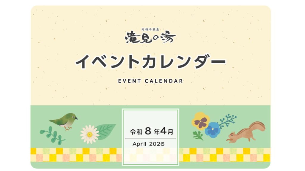 平素より南相木温泉 滝見の湯をご利用いただきまして、誠にありがとうございます。 当館の4月に行われるイベントをお知らせいたします。 皆さまのご来館、心よりお待ち申し上げております。
